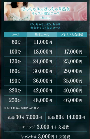 一部ぽちゃもではあったコースが無くなったり金額の変更があります