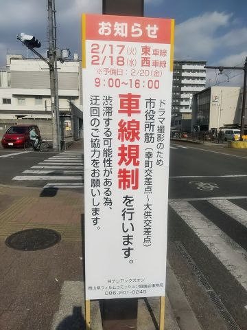 ドラマの撮影で交通規制が