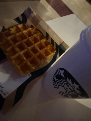 スタバよく行くとけどワッフル初めて食べた??めちゃ美味しか~?