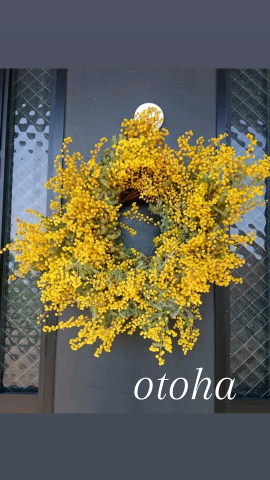 今日ミモザのリース作ったよ?