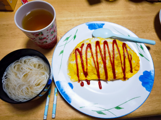 今日はみなも一日中、地味に忙しかったから、夜は簡単にオムライスと素麺のすまし汁にしました?